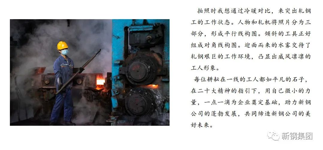 为坚持正确创作导向,在记录好、传播好新钢形象中刻画中国式现代化伟大进程的身边点滴,新钢摄协于近期举办了“学习贯彻党的二十大精神图片分享会”活动。活动中,新钢摄影爱好者们通过自己一年来亲手拍摄的图片,分享创作心得,畅谈精神体会。一句句心声、一张张图片,在让新钢的摄影语言充盈着满满正能量的同时不时地散发着感动。