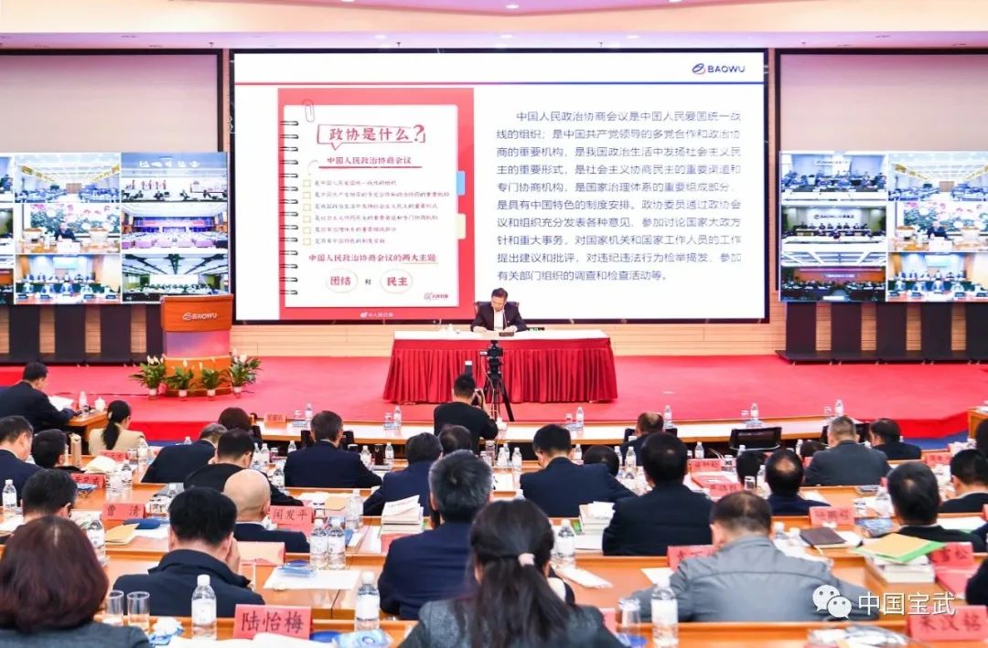 3月17日下午,宝武举行领导人员学习贯彻党的二十大精神集中轮训综合研修班(第二期)暨党委理论学习中心组(扩大)学习,传达学习贯彻全国两会精神。会议强调,全国两会的胜利召开,擘画了未来美好前景,也给我们指明了前进的方向。宝武全体干部员工要更加紧密团结在以习近平同志为核心的党中央周围,踔厉奋发、笃行不怠,在推进中国式现代化、全面建设社会主义现代化国家的征程中贡献宝武力量、谱写宝武篇章、创造宝武辉煌。宝武党委书记、董事长陈德荣出席会议,全国政协委员,宝武总经理、党委副书记胡望明传达了习近平总书记在全国两会期间的重要讲话精神和全国两会精神。