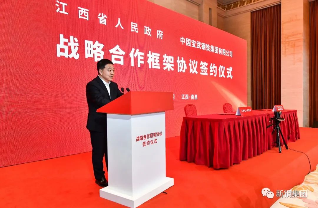 陈德荣、胡望明感谢江西省委、省政府对中国宝武钢铁集团发展的支持帮助。他们表示,协议签署后,中国宝武将加快推进新钢集团在钢铁主业、生态环保、企业管理等各方面步入全国钢铁企业第一方阵,推动新钢集团实现更高质量发展,跻身国内一流钢铁企业,助力江西省推动钢铁产业结构进一步优化,实现转型升级。中国宝武将推进“一基五元”产业深度融合江西省相关产业发展,将江西的区位、资源和产业优势与中国宝武管理、技术和资本优势相结合,加快在新基建、新业态、绿色环保等领域的交流合作,扎实推进协议事项的落实落地,共同开创央地合作发展新局面。