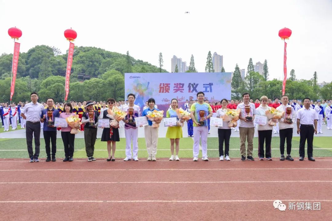 宝武工会主席张贺雷,宝武江西总部总代表、新钢集团党委书记、董事长刘建荣,宝武党委宣传部、企业文化部副部长田钢,新钢集团党委副书记、纪委书记、工会主席胡金华分别为获得金奖、银奖、铜奖的参赛队颁奖。