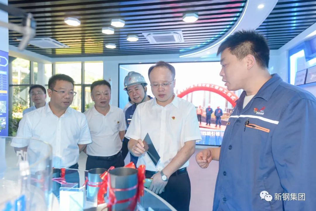 在参观调研过程中,新钢集团党委副书记、纪委书记、工会主席胡金华就新钢党建工作、科技创新、绿色发展、历史变革、数智转型等情况,向徐忠麟一行做了详细介绍。