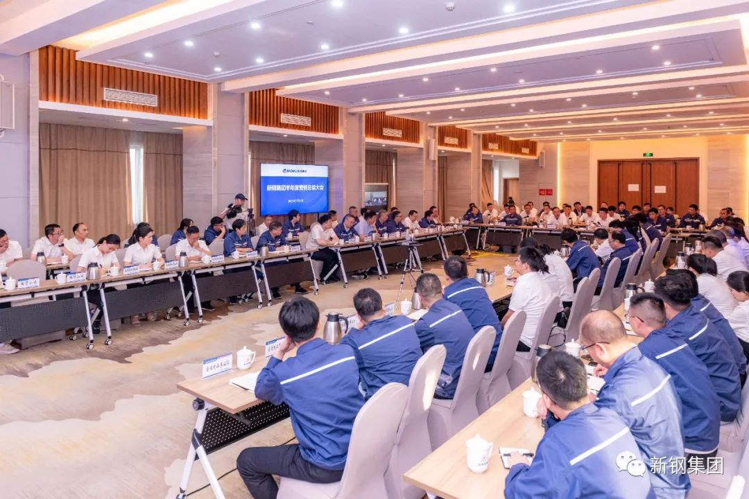 7月4日,新钢集团召开半年度营销工作大会。新钢集团领导刘建荣、刘坚锋、肖忠东,总经理助理帅勇、郭毅出席会议;公司治理部、经营财务部、市场部、技术中心(制造管理部)、物流中心、财务共享中心、厚板特钢事业部、硅钢薄板事业部、金属制品事业部、国贸公司主要负责人,有关部门及单位销售主管负责人和业务人员参加会议。