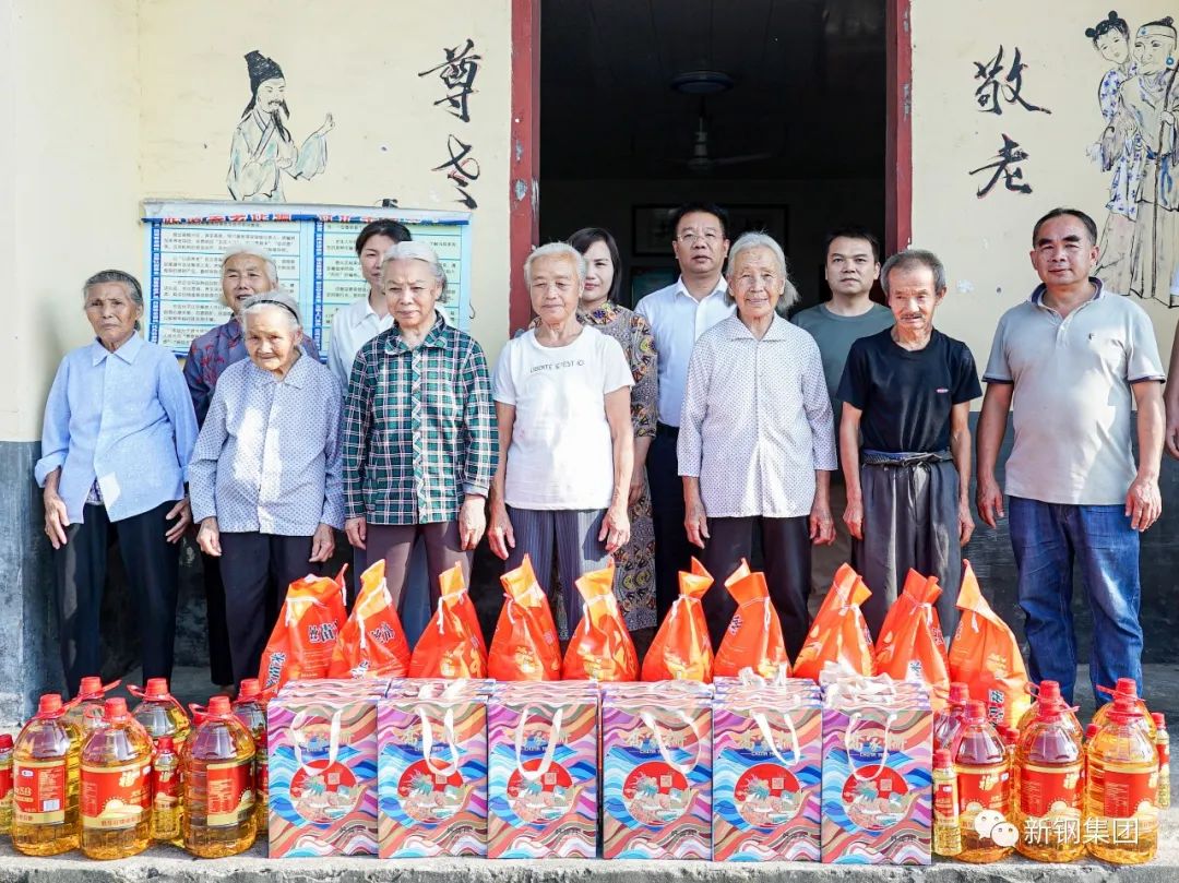 座谈交流结束后,胡金华前往泗背村颐养之家,向村里老人们致以中秋节日问候,并为他们送上了来自新钢集团的关怀——食用油、大米、月饼等慰问礼物。胡金华与老人们亲切交谈,了解他们的生活情况、身体状况。看到老人们硬朗的身体和矍铄的精神,胡金华鼓励老人要保重好身体、保持好心态,并叮嘱驻村工作队要多关心老人,切实为他们排忧解难。