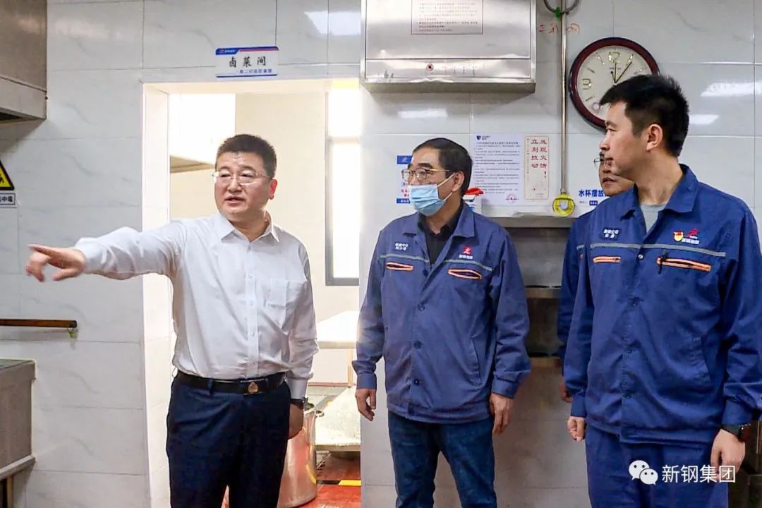 新钢集团党委副书记、副总经理(主持工作)刘坚锋,总经理助理帅勇来到第二行政区食堂调研。