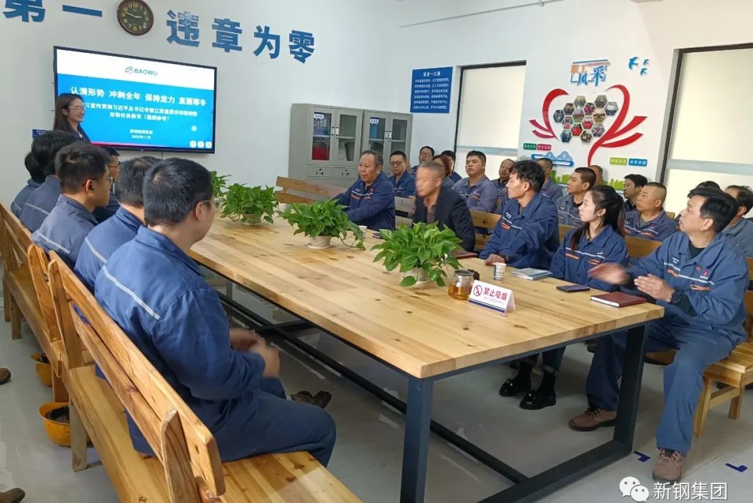 按照新钢集团党委的统一部署,公司领导班子全体分别于近日先后深入基层一线开展宣讲。公司领导廖鹏、胡金华、卢梅林、肖忠东、傅曙光、李浩鸣,总经理助理向学庆、帅勇、郭毅先后来到各自挂点基层党支部,深入学习习近平总书记考察江西重要讲话精神,为一线党员和干部职工解析形势、明确方向、讲清任务、振奋信心。听取宣讲后,广大干部、职工纷纷表示,形势任务宣讲为大家指明了前进方向、明确了奋斗目标、讲清了具体措施、增强了工作信心,全体干部职工对完成今年奋斗目标、战胜行业寒冬更有底气,我们一定要立足本职做好工作,用更好的指标、更优的业绩,为新钢集团持续、健康发展作出更大贡献。