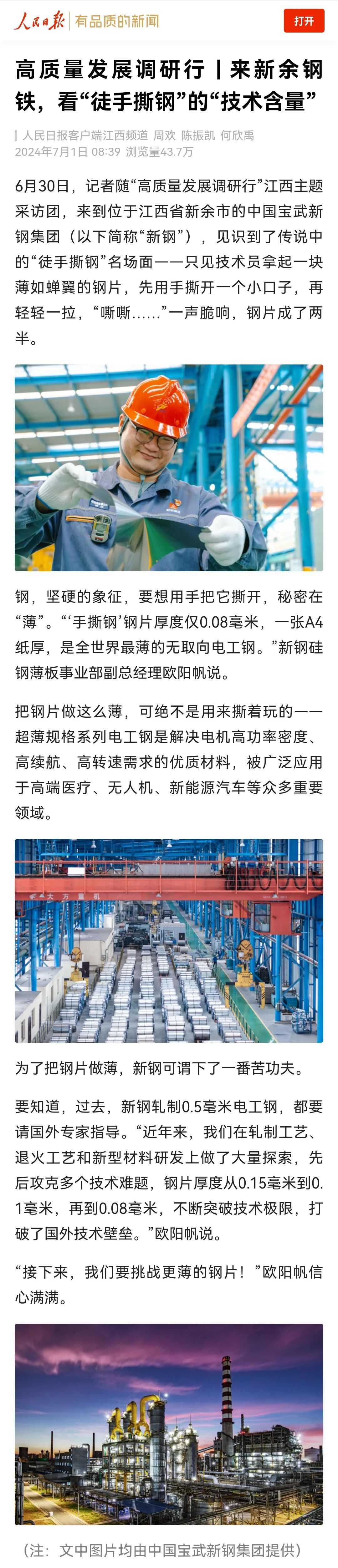 人民日报、央视新闻、新华社等密集关注:世界之最!新钢,杠杠滴……