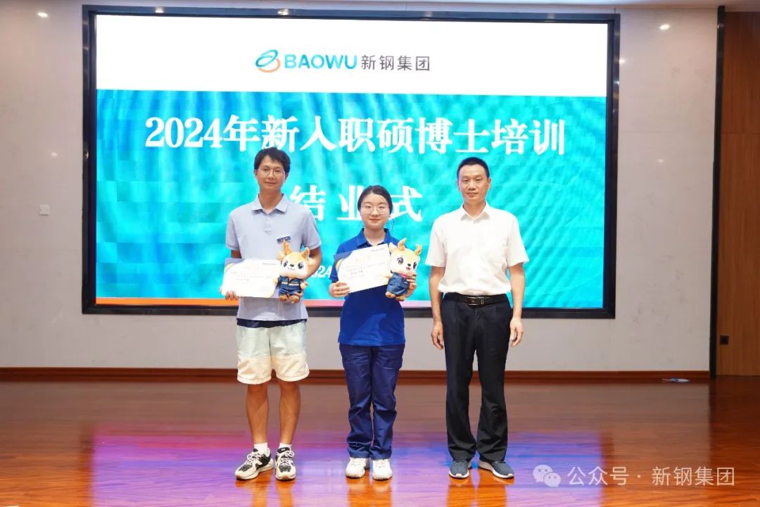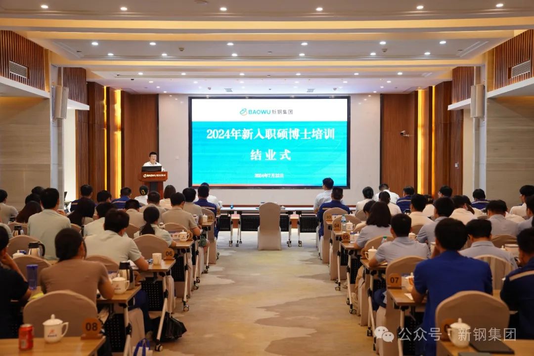 7月22日,新钢集团2024年新入职硕博士培训结业式在袁河宾馆举行。新钢集团总经理、党委副书记刘坚锋出席结业式并作讲话。 公司2024年新入职硕博士岗前培训跨度三周,共10个学习日,培训内容包括军事训练、理论教学、体验参观、交流互动及结业考试。 结业式上,与会人员共同观看入职培训汇报短片《青春逢盛世,奋斗正当时》。新入职硕博士表演自编自导的文艺节目。结业式上,公司对此次入职培训中的冠军团队、“明星班干部”和“明星学员”进行表彰。 新钢集团总经理、党委副书记刘坚锋围绕“一二三”即:一个美丽的误会;两个新钢品牌袁河、山凤;三个创新包括形象创新、研发创新、管理创新等内容,与新入职硕博士分享从业心得体会,并对大家提出四点期望。一是要坚守初心,始终保持高昂的精神状态。要始终怀揣梦想,心存抱负,志存高远,坚守初心,并为之奋斗。理想有多高远,就能够走得多远,机会总是更眷顾于那些有准备的人、垂青于那些有梦想的人。二是要执着于行,坚持的力量是伟大的。只要大家专注于一个领域,始终如一地坚持,就能积少成多、聚沙成塔,相信大家都能够成为高歌猛进,意气风发的强者。三是要终身学习,始终与时代同行。希望大家把学习作为一种终生的习惯,向领导请教、向师傅请教、向实践求解,始终与时俱进,不断充实自己、不断提升自己,做一个永远求知若渴、永不落伍的人。四是要心存感恩,以积极的心态面对人生。要常怀感恩之心,要感恩父母、感恩友人、感恩企业、感恩自己。在面对困难和挑战时,要毫不畏惧、勇往直前,为钢铁事业的进步与发展奉献青春和力量。 公司总经理助理、党委组织部(人力资源部)部长向学庆主持结业式。党委组织部、党委宣传部、团委、数智化部、炼铁事业部、厚板事业部、硅钢薄板事业部、特钢事业部、维检中心、中心医院等单位负责人参加结业式。 (出品/ 新钢集团党委宣传部)