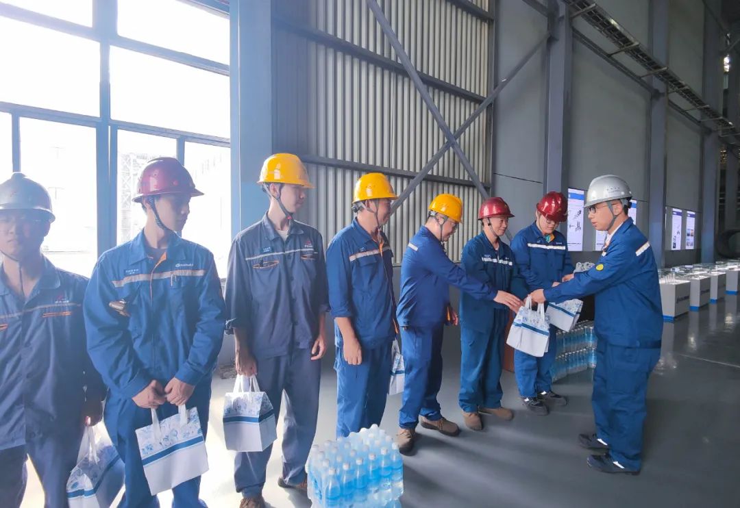 近日,新钢集团党委书记、董事长刘建荣率队前往炼铁事业部,看望慰问奋战在生产第一线的干部职工,为他们送去包括绿豆汤、冰糖、冰淇淋、冷饮等在内的防暑降温大礼包,送去公司党政的关怀与问候。